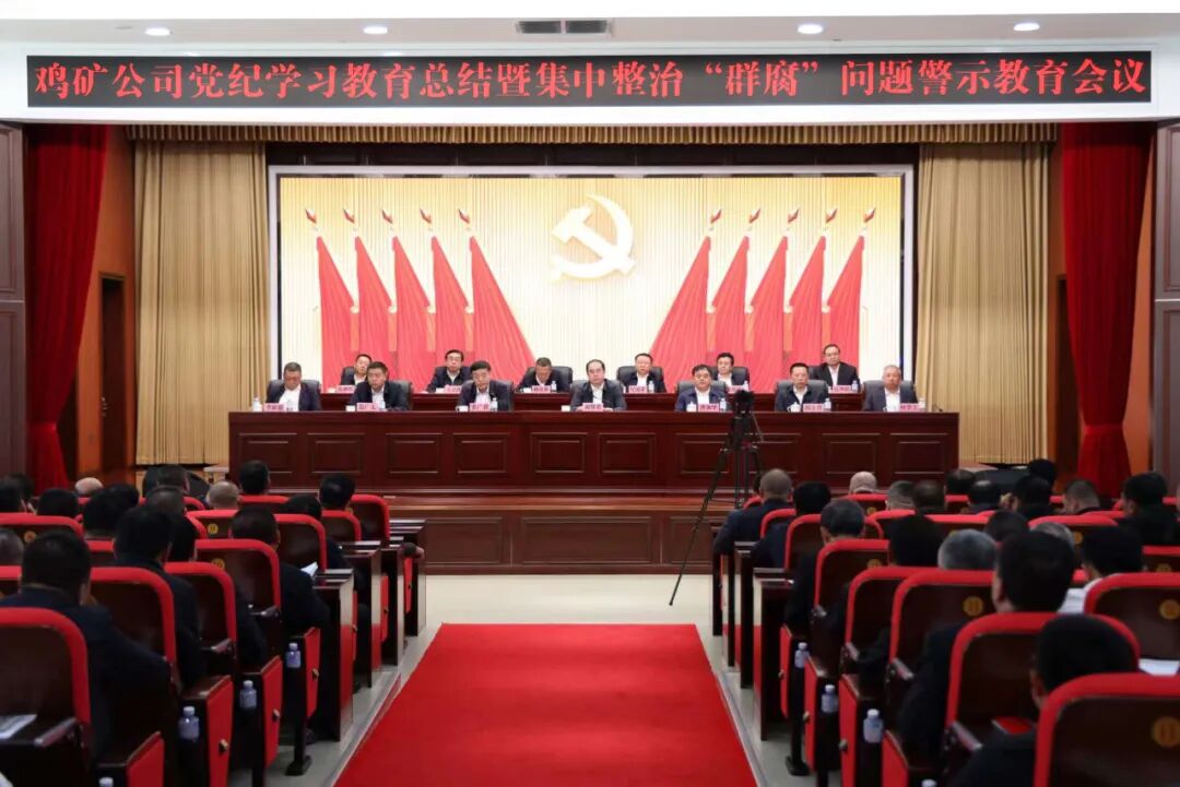 9月27日下午,公司党纪学习教育总结暨集中整治“群腐”问题和警示教育会议在安全技术培训中心综合楼四楼报告厅召开。会议的主要任务是:深入贯彻落实习近平总书记对党纪学习教育重要指示、中央和省委党的建设工作领导小组会议精神,全面总结党纪学习教育开展以来取得的成效,通报违纪违法典型案例,以案为鉴、以案明纪、以案促改,部署群众身边不正之风和腐败问题集中整治工作,用身边的事教育身边的人,引导广大党员干部落实全面从严治党主体责任,为推动高质量发展建设现代化新鸡矿营造良好的政治生态环境。